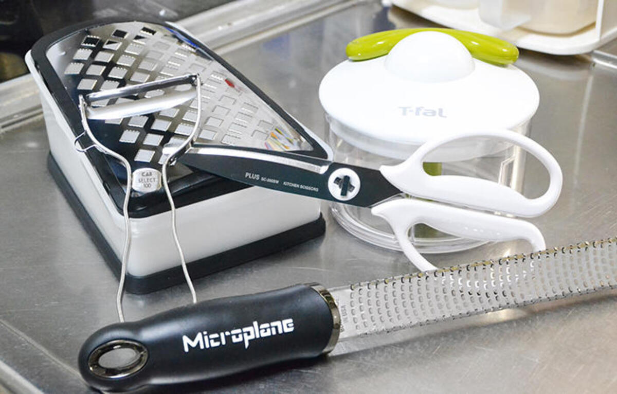 続いてはマイクロプレイン社の「プレミアムゼスター グレーター」。ハード系のチーズはもちろん、果物もチョコレートもしょうがもにんにくも、なんでもすりおろせる万能おろし金です。