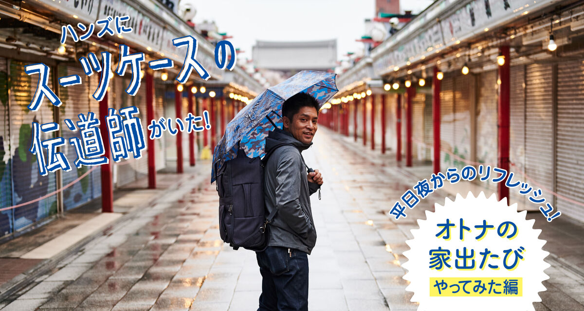 3度のメシよりスーツケース!自身を"スーツケースの伝道師"と称し、スーツケースのよさを世の中に広めるべく生きている、ハンズのトラベルグッズバイヤー、佐藤による連載記事!今回は、佐藤がおすすめする新しい旅のかたち"オトナの家出たび"をご紹介。その提唱者である伝道師が実際に体験してきた様子をお届けします!