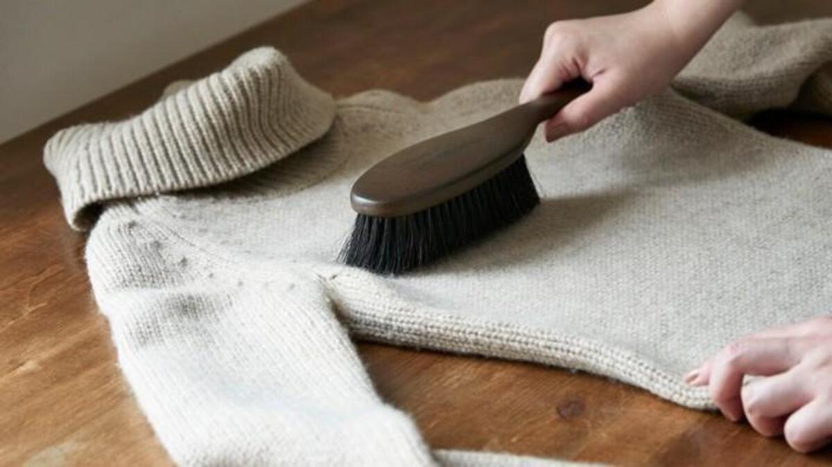 池田さん:機械を使うのもいいですが、生地を傷める可能性があります。私は、ここでもブラシをおすすめします。普通にかけるのではなく、毛玉にブラシの毛を引っ掛けて軽くひねるようにすれば簡単にとれますよ。毛玉を抜くような感覚でブラシを使ってみてください。
