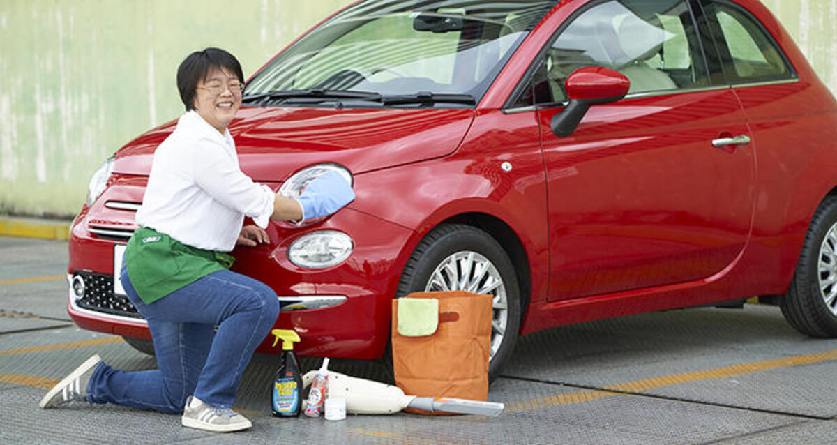 今回は「家庭用品を使って車の掃除をしよう」というテーマで、家にも車にも使えるすぐれものばかりをバイヤーの園田がセレクトしました!フィアットのコンパクトカー、500(チンクエチェント)を実際に掃除しながらご紹介します。