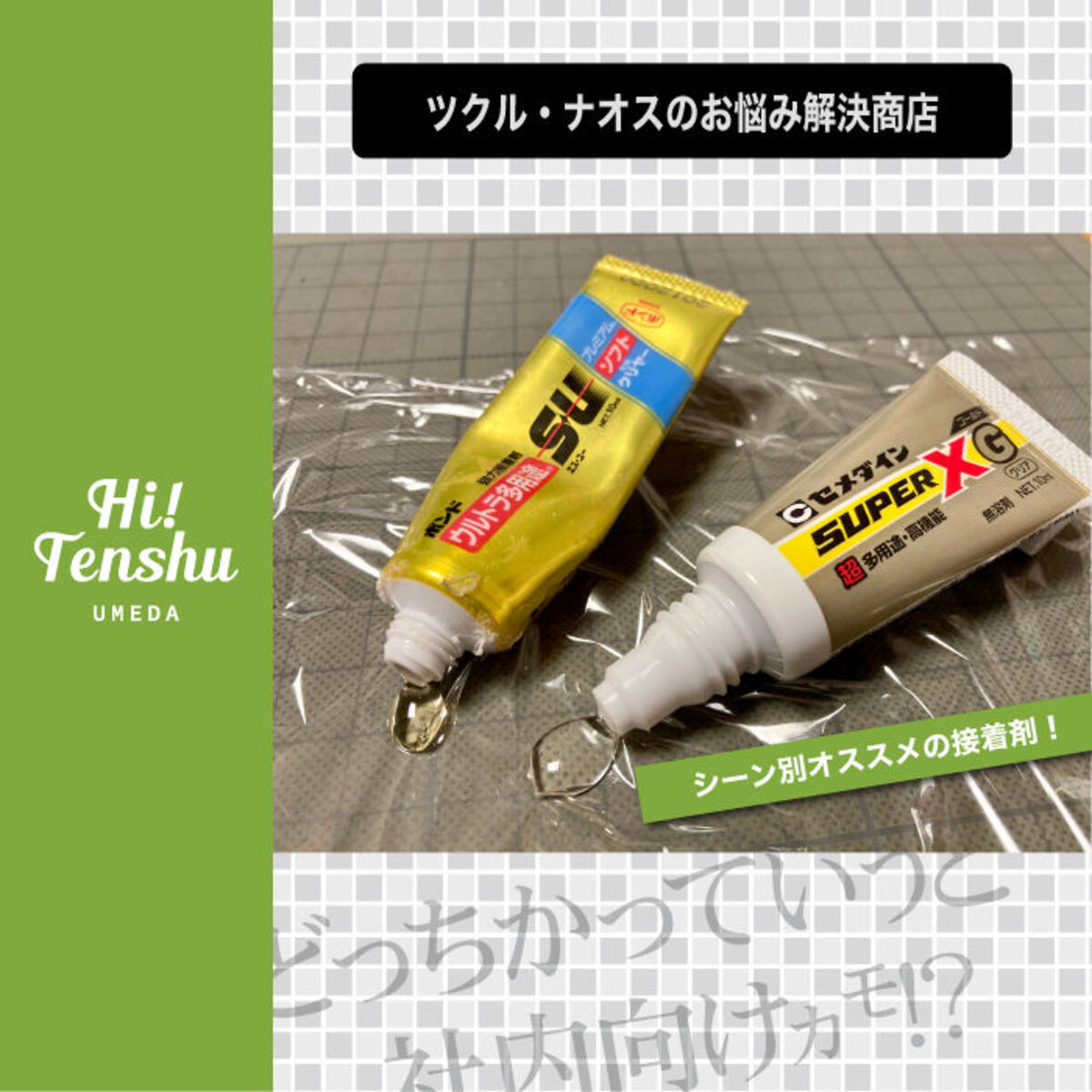 スタッフによると、スーパーXよりSUの方が接着剤自体がやや硬めなので接着作業をする時にズレたり流れたりしにくいから好きと言う意見もありました。