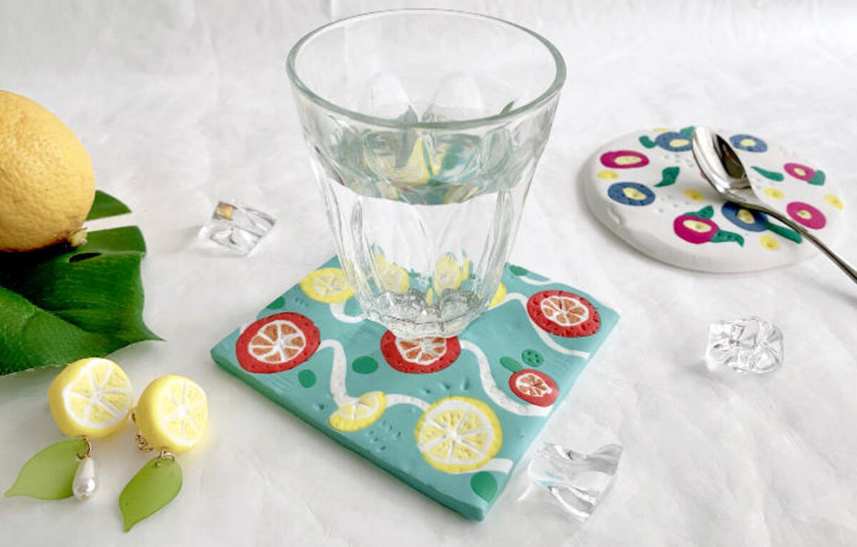 今回は、オーブンで気軽に本格的な作品づくりが楽しめる樹脂粘土「フィモ」を使って、夏らしいカラフルなコースターをつくります。パーツのつくり方をマスターすれば、トレイやアクセサリーなどにもアレンジできますので、ぜひチャレンジしてみてくださいね。