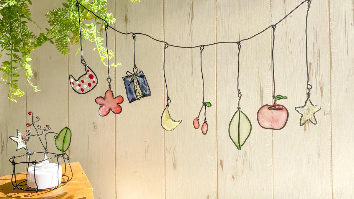 今回はワイヤーでつくったモチーフに「フィルムレジン」でカラフルな膜を張らせた、ポップなワイヤーアートをつくります。窓際や壁に飾ってステンドグラスのような透明感を楽しみましょう!