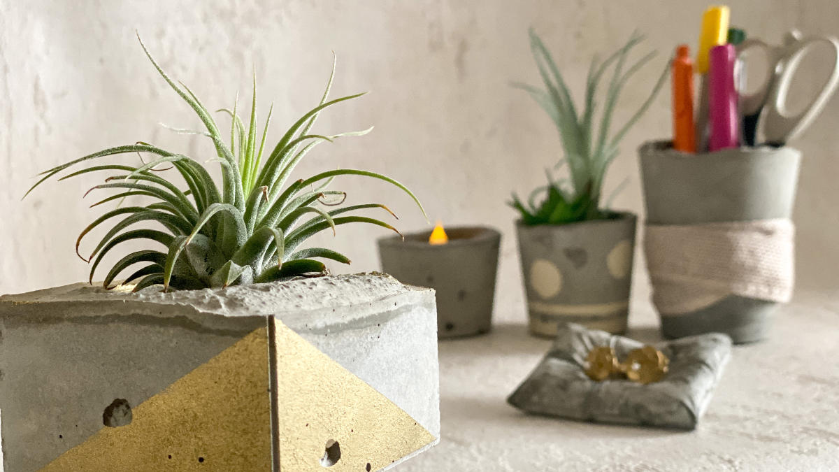 今回は水と混ぜるだけ固まる「インスタントセメント」を使って、おしゃれなセメント植木鉢をつくります。型や大きさを変えてアレンジすれば、ペンスタンドやアクセサリートレイなど、本格的な仕上がりの小物がつくれます。