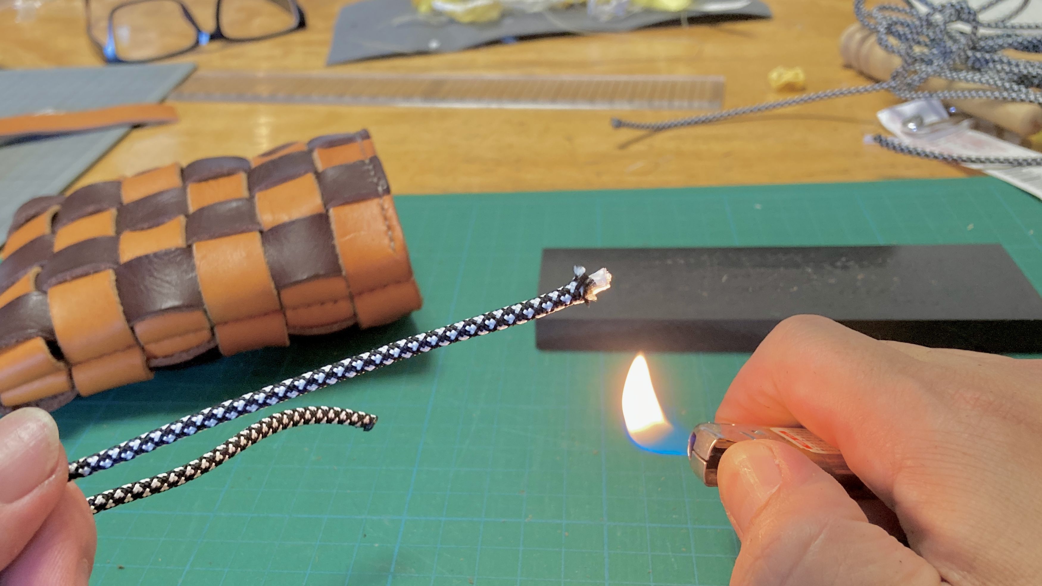 切りっぱなしだとほつれてくるので、ライターで少し炙ります。ガスコンロでもいいです。どちらもヤケドには注意して下さいね。