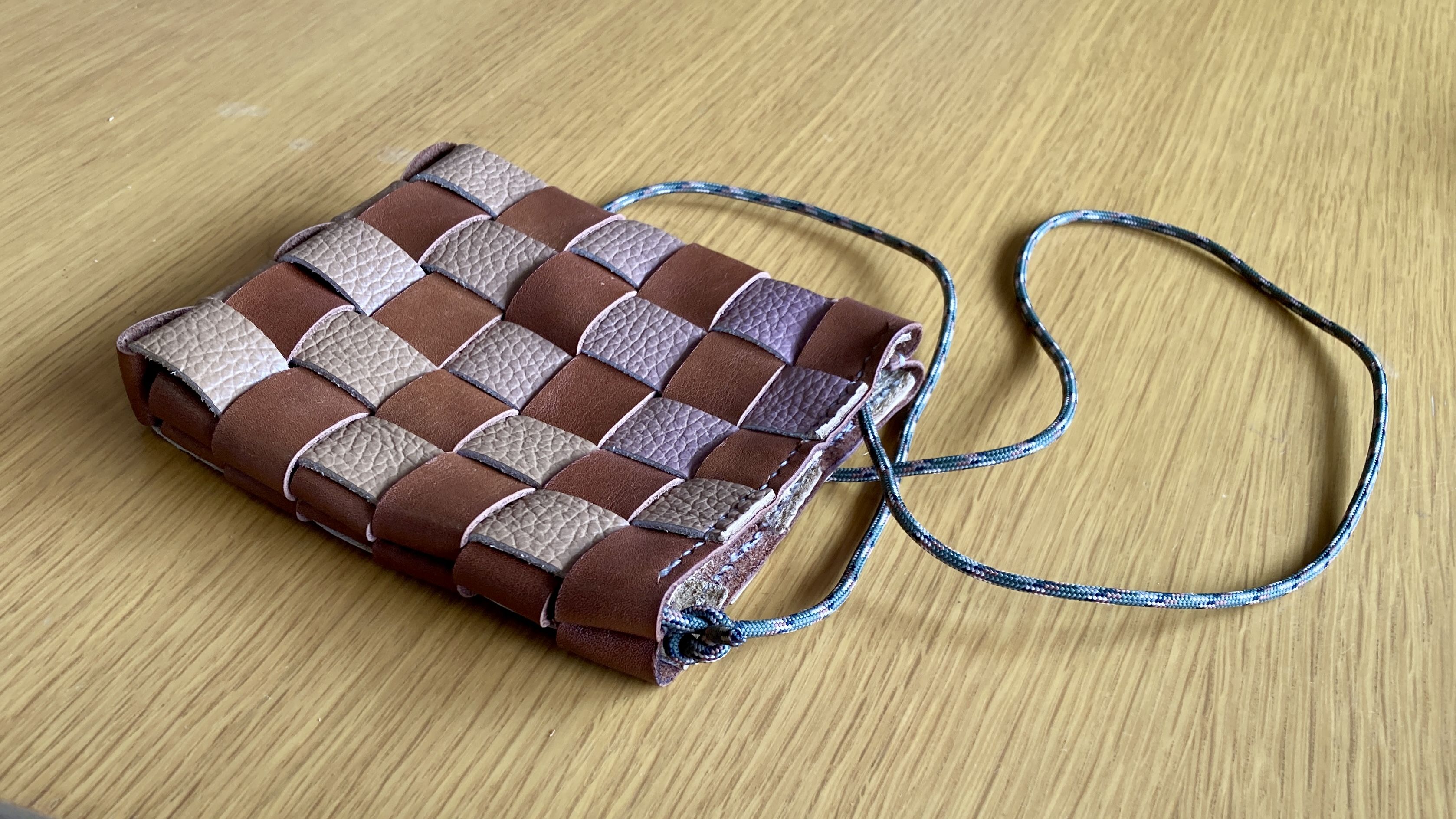 革ベルトで袋状の物が作れないかと考え、最初に試作したのはこれです。