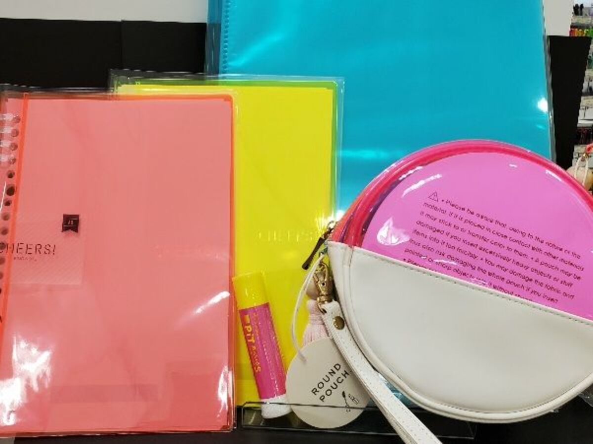 ほかにも、ペンケース、シール、ふせん、スティックのりなど、探せば結構みつかる #ネオンカラー文具