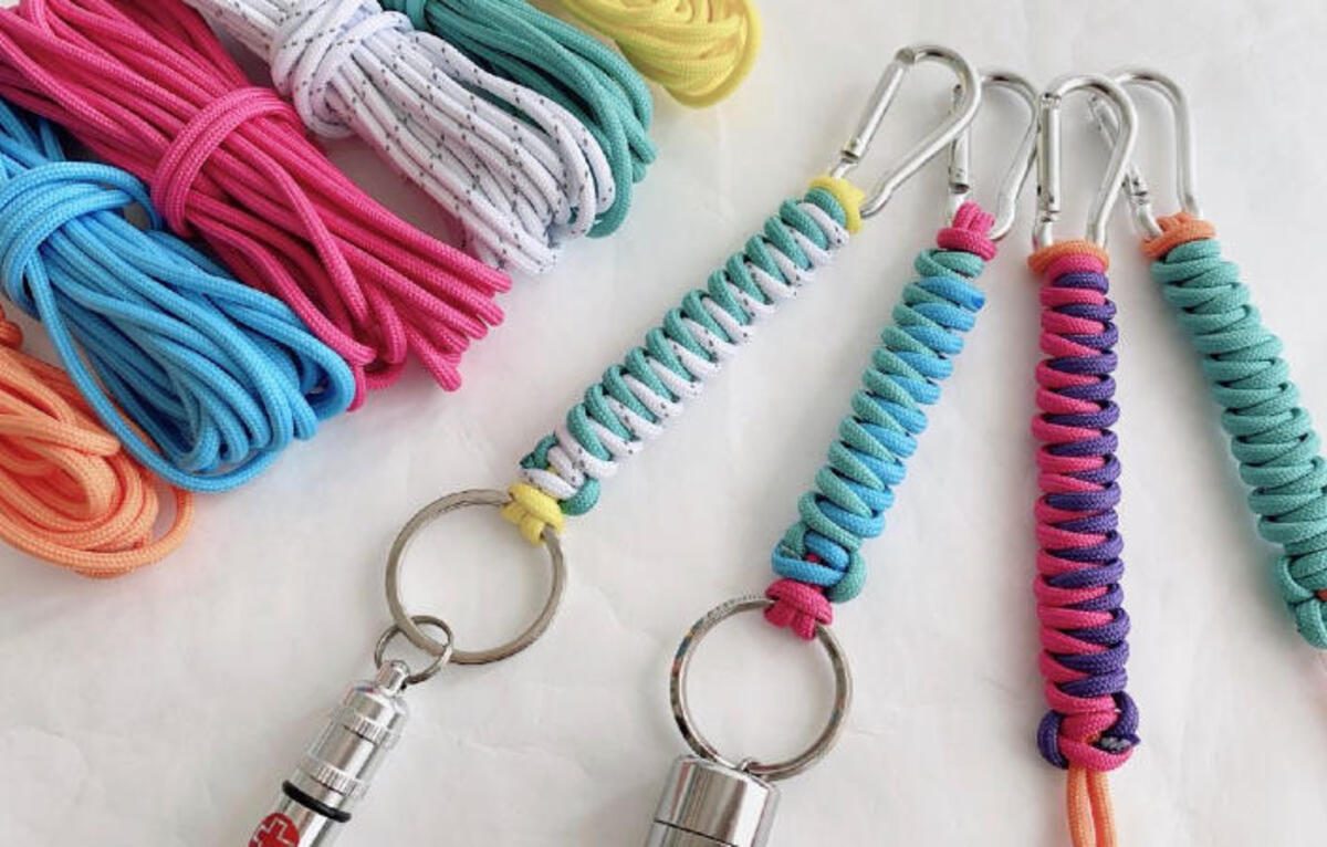 | パラコードとは 今回使用した「メルヘンアート アウトドアコード」も引張強度が約180kgととても丈夫でカラー展開も豊富、ライトに反射して光る反射テープ入りのものもあるので、色々なアレンジが楽しめます! |