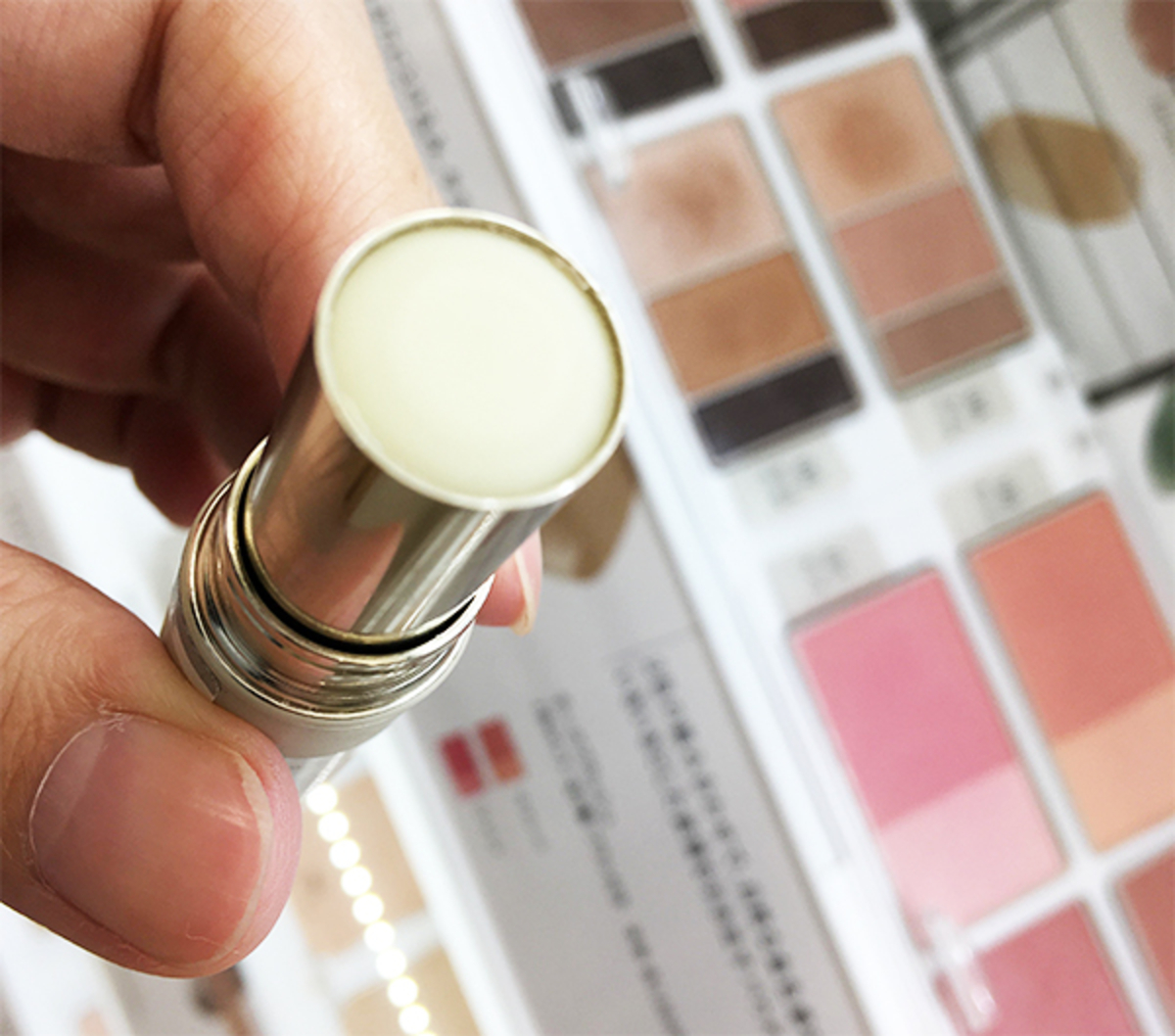 これは、テカリや毛穴補正のアイテムで、鼻や頬の毛穴を埋めて凹凸をなくします。