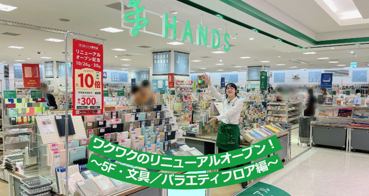 いよいよ、リニューアルオープンを迎えた、新生ハンズ博多店。新たな5Fは、好きになることに出会える、気持ちアガる文具・バラエティ・クラフトの商品が集うフロアです!