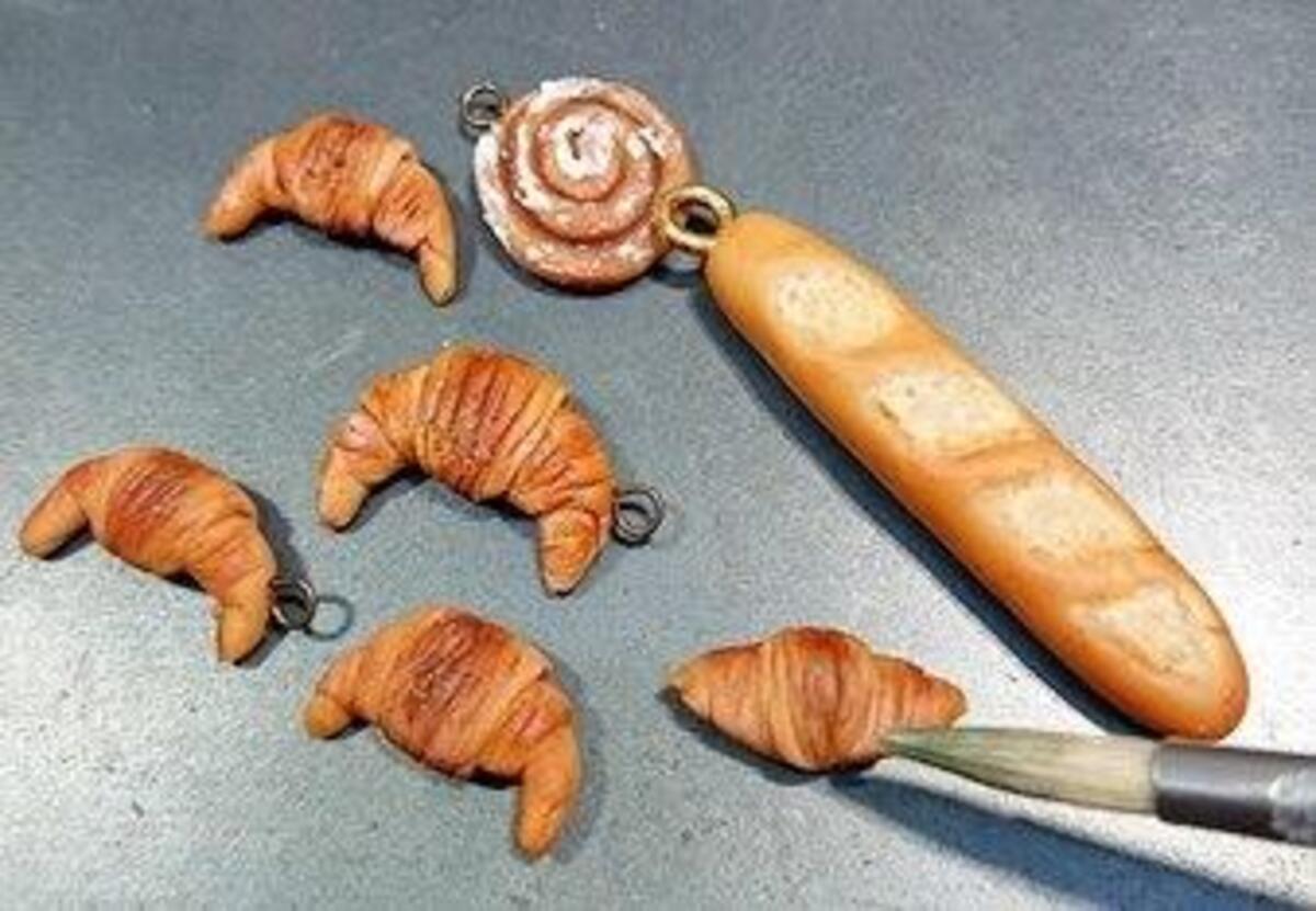 できあがったパンはヒートンをつけてぶら下げればアクセサリーに