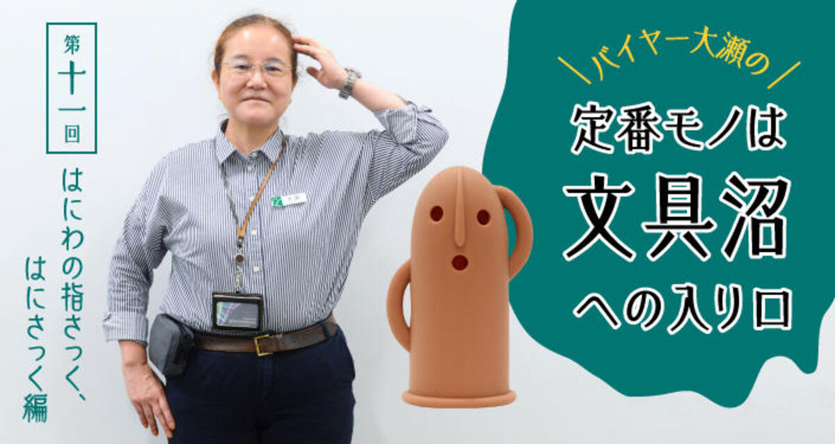 ハンズ歴29年の大ベテラン、大瀬が、定番の事務用品を始め、さまざまな文具の魅力に迫る連載記事。第十一回は、指サック界の常識を楽しく覆す〈はにさっく〉をご紹介しました!大瀬バイヤーは次回、どんなアイテムをピックアップするのか!?乞うご期待!