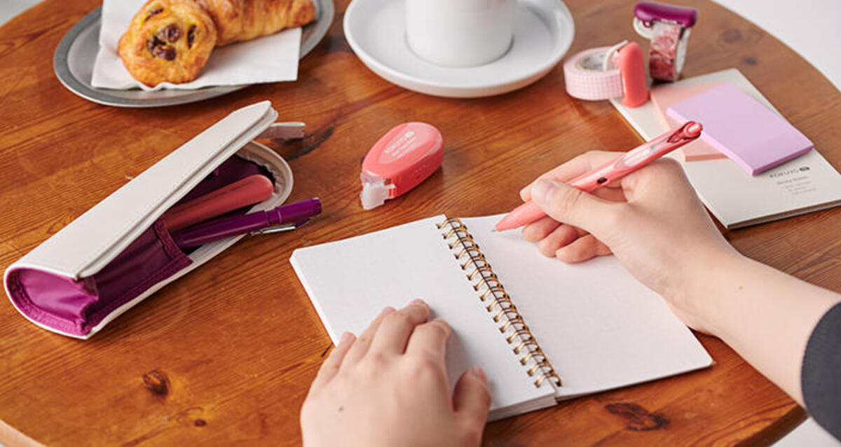 オフの日は大好きな色でコーディネートを。たとえば、お洋服に取り入れるには少し難易度の高いピンクやパープルカラーも、文具でなら気軽に取り入れられるはず。好きなカラーを身の回りに集めれば、気分もアップ!毎日の日記や勉強も捗りそうです。
