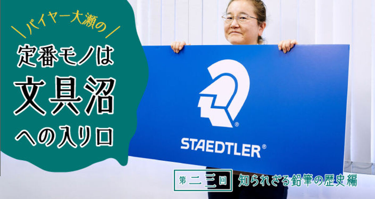 この連載は、文具沼にハマった事務用品バイヤーの大瀬が、あなたを深い深い文具沼へと誘(いざな)う物語。大瀬バイヤーが今回目をつけたのは、187年前から鉛筆づくりを行うという超老舗メーカー〈ステッドラー〉さん。世界最多※の硬度(12B~10H)を誇る鉛筆〈マルス ルモグラフ高級鉛筆〉が代表的な商品ですが、今回は〈マルス ルモグラフ高級鉛筆〉を含むこだわりのアイテムを3点ご紹介いただきます!