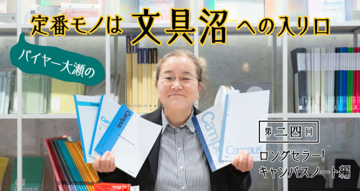 この連載は、文具沼にハマった事務用品バイヤーの大瀬が、あなたを深い深い文具沼へと誘(いざな)う物語。大瀬バイヤーが今回目をつけたのは、老舗文具メーカーである〈コクヨ〉のノートやルーズリーフ。一度は使ったことがあるであろう〈キャンパスノート〉や〈キャンパスルーズリーフ〉のロングセラーの秘訣について深掘ります。また、新商品バインダーノート〈スマートリング〉布表紙についてもご紹介します!